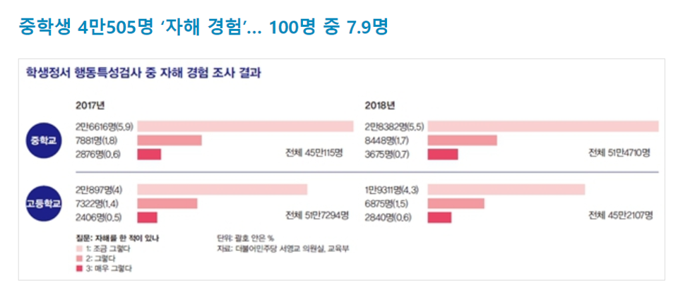 더 심각한 문제는 자살 충동과 자해 경험입니다.