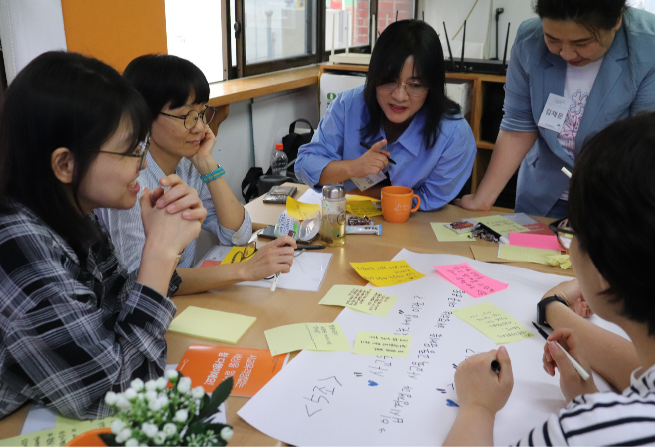 전국에 계신 지역모임 구성원들이 한 자리에 모였습니다. 정지현 전국지역대표의 사회로 이루어진 워크숍은 조혜영, 김재은, 정주영, 신인지 신구 지역대표와의 토크쇼, 지역모임의 오늘과 미래를 짚어보는 조별활동과 <꼬마정원사> 읽기까지 알차게 진행되었습니다.