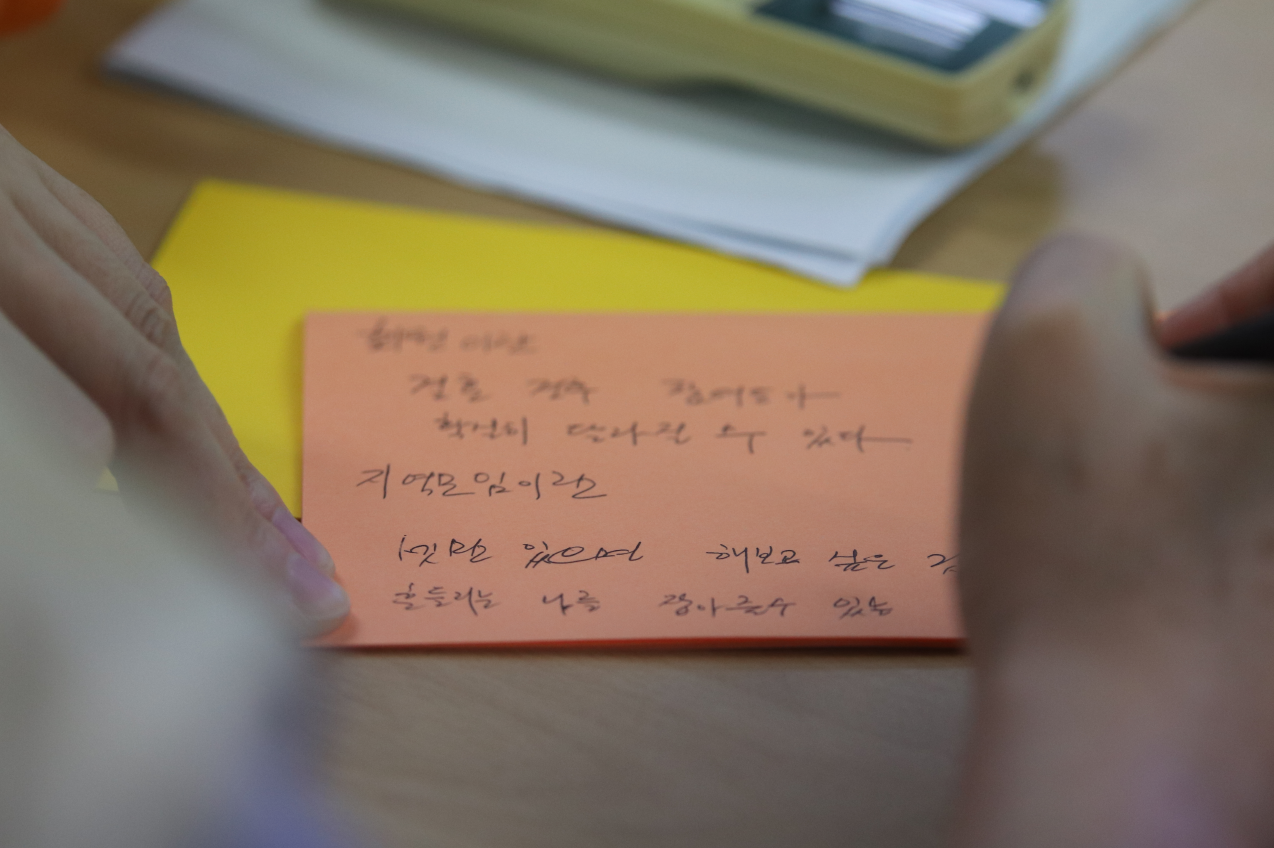 "사교육걱정없는세상은 제가 부모로서 아이를 있는 그대로 받아들일 수 있게 해 주었어요. 부모로서 깨져야 할 때, 잘 깨지도록 도와준 것 같아요." "학교 공부를 전혀 안 했던 아이가 컴퓨터는 좋아했거든요. 걱정을 했지만, 그 지금은 커서 프로그래머가 됐어요." "저는 '실패'라는 말은 절대 아이에게 하지 않았어요. 입시를 생각하면 성공 아니면 실패잖아요. 삶의 가치는 수능 너머에 있어요." "무리하게 기준을 아이에게 요구하기 보다는, 아이가 멈추고자 하면 저도 같이 멈췄어요. 그러다보니 공부 정서가 좋아졌어요. 수학을 못하는데 좋아합니다." "자녀의 있는 그대로의 모습을 믿어주시고, 응원해 주셨으면 좋겠습니다." "함께 계속 모였으면 좋겠습니다. 함께 공유하고 어려움을 헤쳐나간다면 자녀를 위한 우리나라 교육도 좋아지지 않을까 싶습니다." 참석자들은 "사교육 없이도 아이를 키울 수 있다는 용기를 얻었다", "구체적인 이야기를 들을 수 있어서 좋았다", "자녀와 부모의 입장을 들음으로써 확신과 안정감을 느낄 수 있었다" 등의 후기와 시즌2가 있다면 꼭 참석하고 싶다는 기대의 말씀도 남겨주셨습니다. |