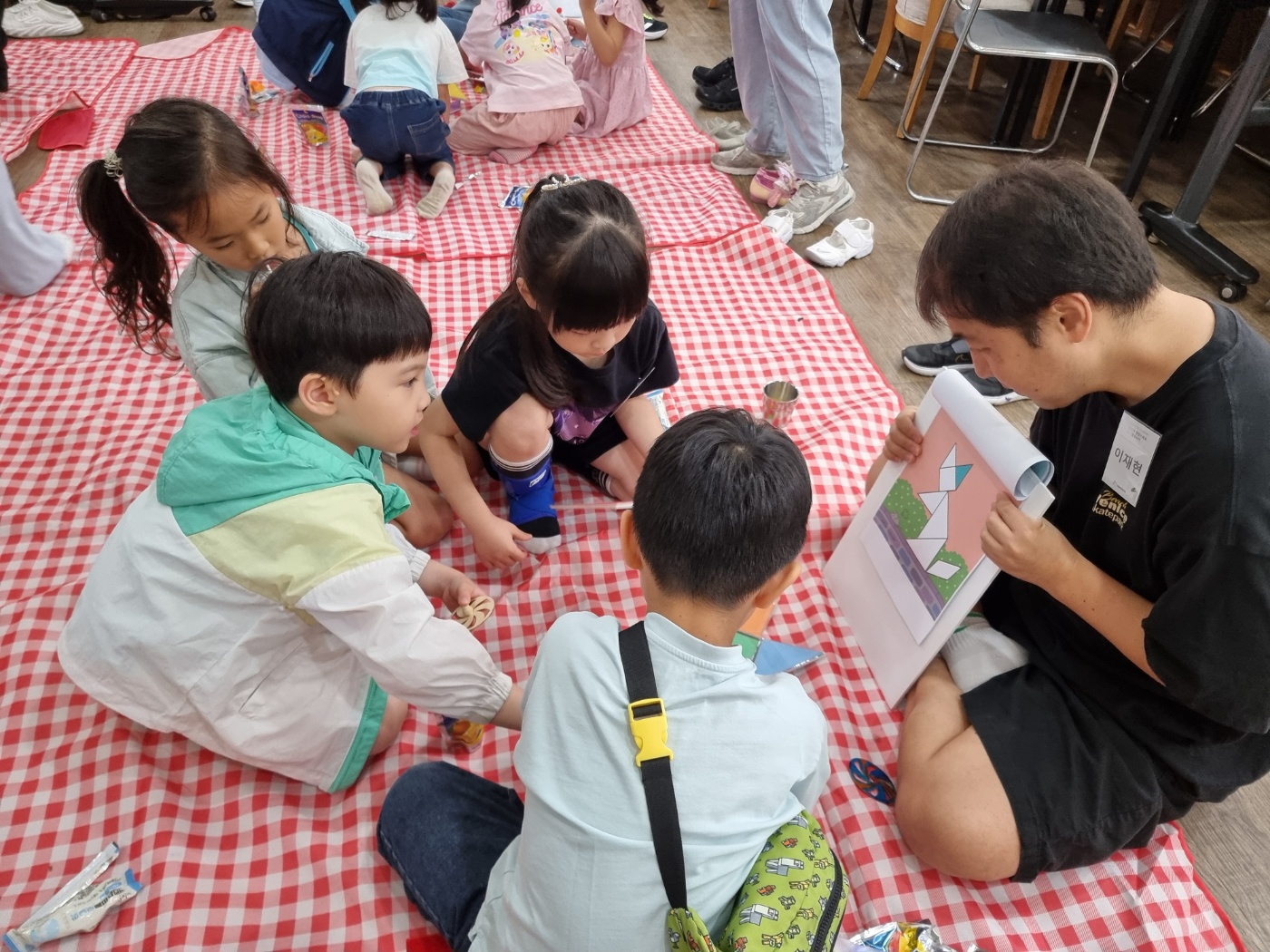 이렇게 부모님들께서 프로그램에 참여하실 때 자녀 돌봄 프로그램도 옆에서 진행되었는데요, 추석이 다가온 만큼 선생님들과 나무 팽이 꾸미기, 칠교놀이, 영화보기, 전쟁기념관 관람 등을 했어요.