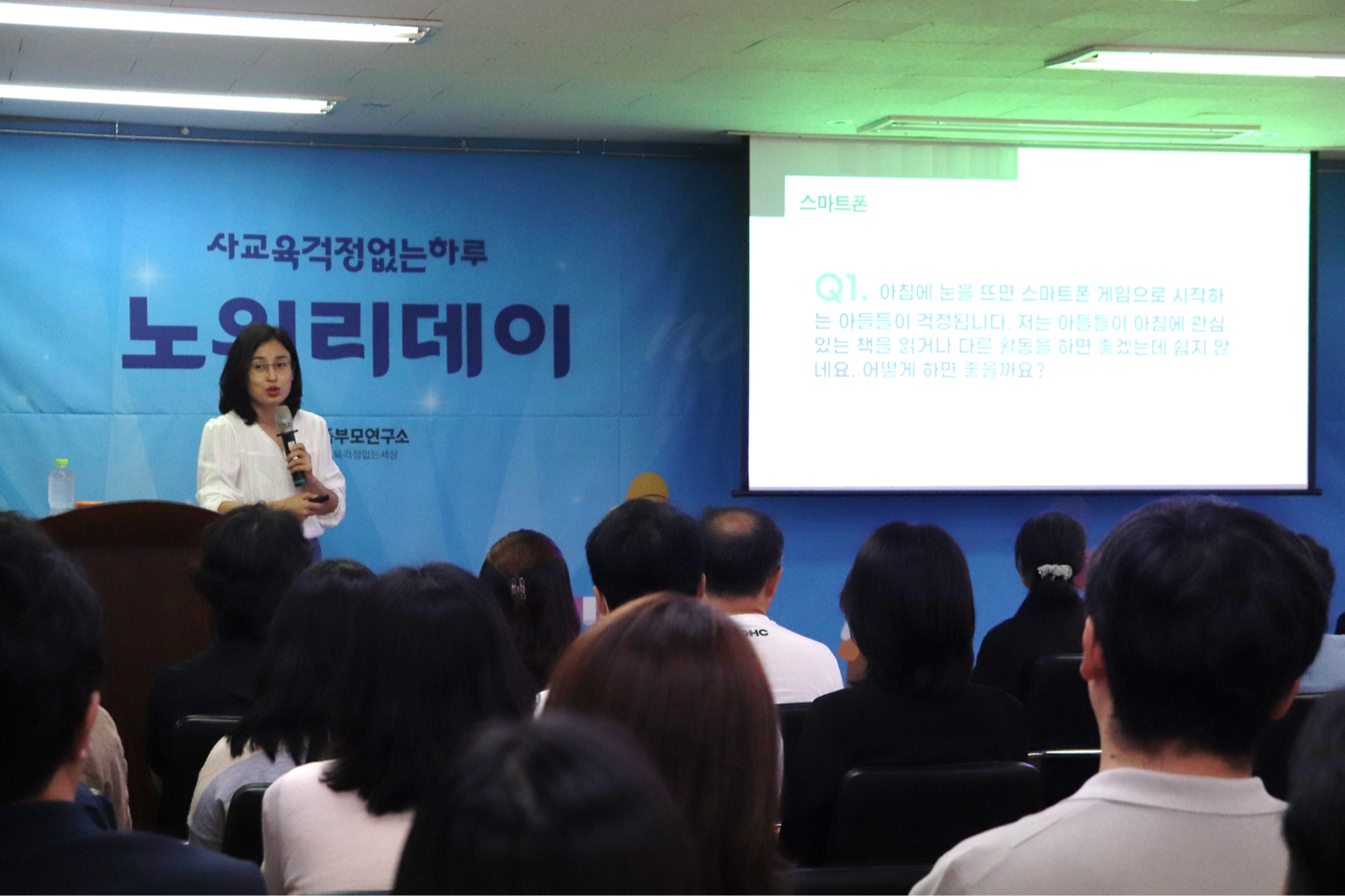 2부에서는 사교육걱정없는세상 요즘부모연구소 윤다옥 소장님께서 자녀 양육에 대해 솔루션을 주시는 <맞춤 부모 상담>이 진행되었습니다.