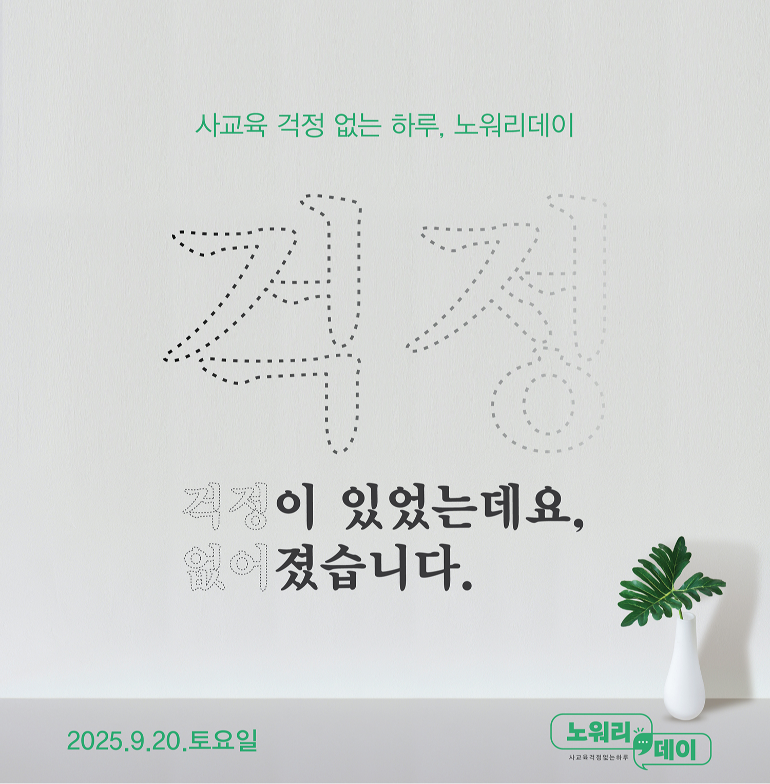 노워리데이는 자녀의 사교육과 입시경쟁을 걱정하고, 불안해하는 부모님들을 위해, 조금이나마 걱정을 덜어드리기 위해 만든 날입니다^^