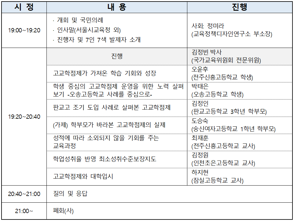 고교학점제 개선 및 안착을 위한 이번 토크 콘서트에 우리 교육 전반의 변화를 바라는 모든 시민들과 언론 관계자들의 많은 관심과 참여를 부탁드립니다.