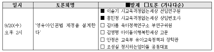 ■ 영유아인권법 제정을 위한 토론회 예고보도(2017.09.15.)