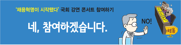이번 ‘채용 혁명이 시작됐다-기업 인재 채용의 미래 모델 확산 국회 강연 콘서트’는 우리 곁으로 다가온 그 변화의 실상을 알 수 있는 좋은 기회일 것입니다. 많은 관심과 참여 바랍니다.