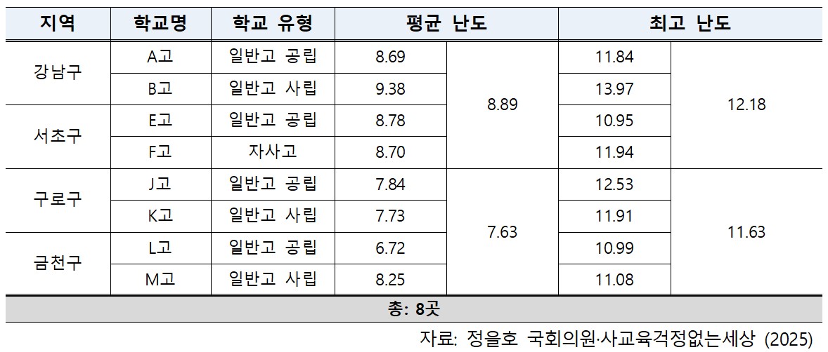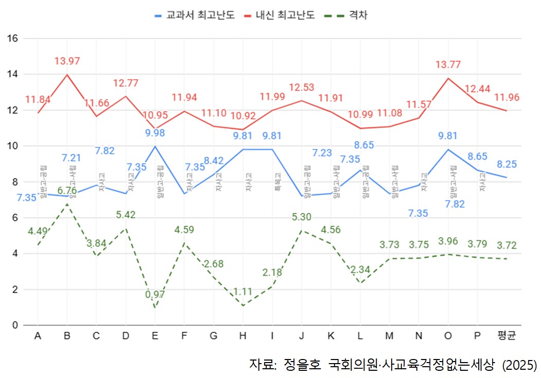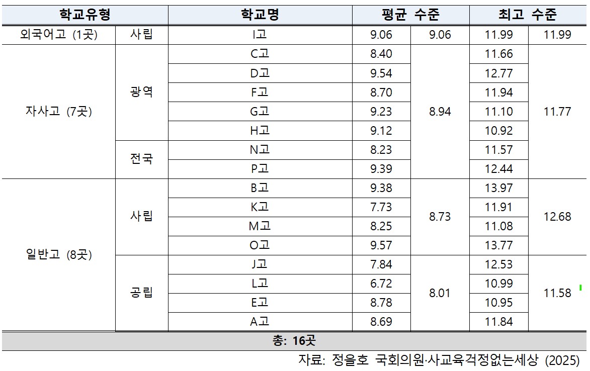 더불어민주당 정을호 국회의원(국회교육위원회)과 사교육걱정없는세상(이하 ‘사교육걱정’)은 전국 16개 고등학교의 2025년 1학기 내신 기출문제(해당 교육청이 자료 제출) 중 수학과 영어 과목의 고교 교육과정 준수 여부를 분석했습니다. 이번 조사는 고교내신이 상대평가인 상황에서 등급을 가르기 위해 고교 교육과정을 벗어난 고난도 문항이 출제되고, 학교 수업만으로 이를 대비하기 어려워 결국 사교육에 의존하게 되는 모순된 실태를 규명하기 위해 진행하였습니다.