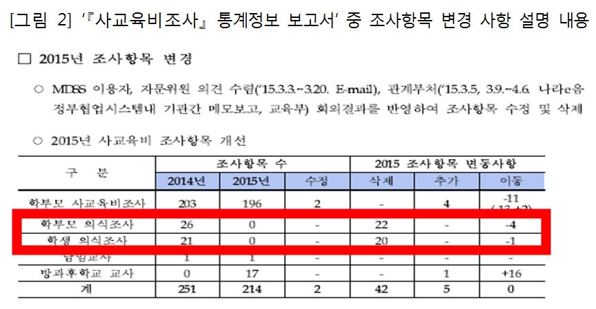 교육부는 사교육비 통계조사에서 ‘사교육 의식조사’를 중단한 이유를 밝히십시오.