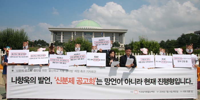 국회는 ‘신분제 공고화’ 중단하는 출신학교 차별 금지법 제정에 즉각 나서십시오.