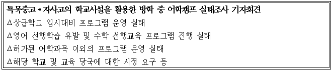 ■ 행 사 명 : 특목중고∙자사고의 불법적 영어캠프 운영에 대한 시정 요구 기자회견