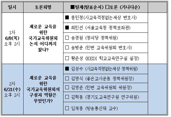 “국가교육위원회 구성과 역할”을 제안한다. -6/21(수), 오후 2시 사교육걱정없는세상, 토론회 개최