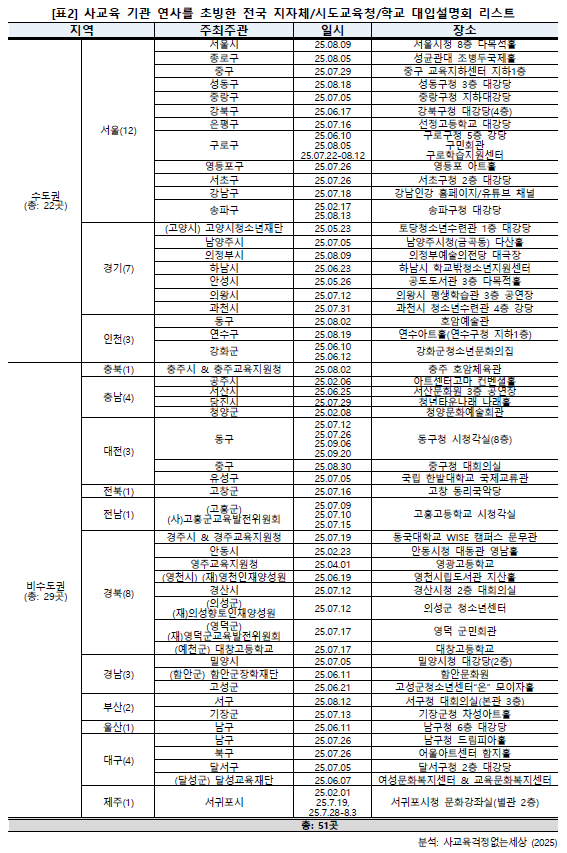 ■ 2025년 지역별 사교육 연사 초청 설명회 개최 현황(2025년 8월까지)