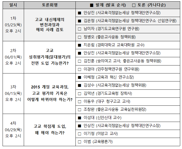 5. 25(목), 고교 내신체제의 변천 과정과 해외 사례를 살펴보는 첫 토론회를 개최합니다.