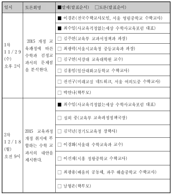 ▲ 1차 토론회(11월 29일 수요일, 오후 2시)는 2015 개정 교육과정 수학 검정교과서의 문제점 분석을 통한 수업 혁신과 평가 방향을 논하는 토론회로 진행할 예정임.
