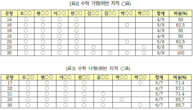 “교육과정 내에서 사용하지 않는 수학 기호를 사용하여 교육과정 문서의 성취기준과 평가 기준에 맞추어 성실하게 학교에서 수업 및 평가 받은 학생들이 해결하기 어렵다”