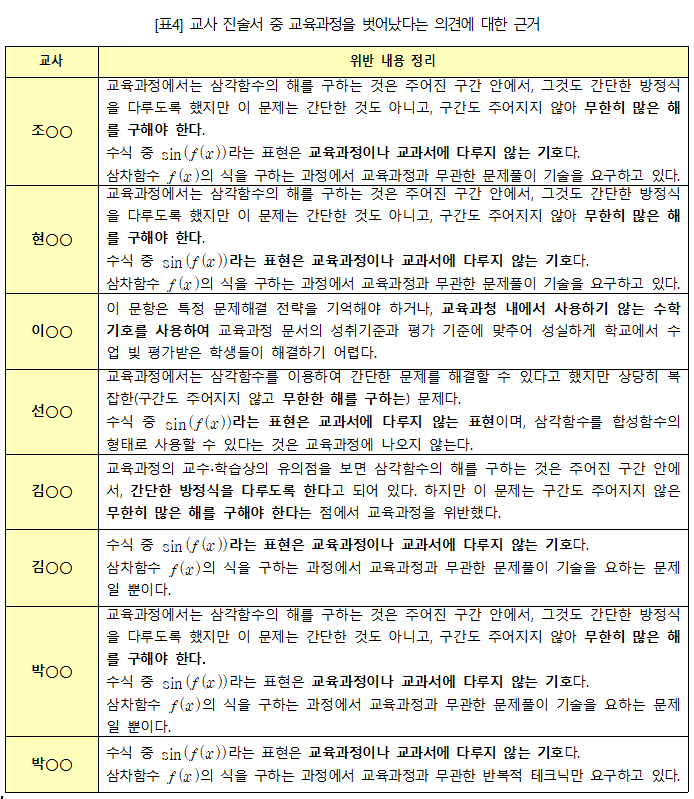 교육과정을 넘어서는 수준의 출제는 공정성과 객관성을 강조하고 있는 평가원의 수능의 목적과 완전히 충돌합니다. 교사들의 진술서 일부만을 발췌합니다.
