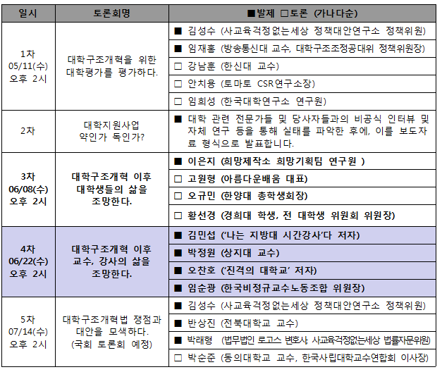 ■ 대학구조개혁 현황과 개선을 위한 4차 토론회 예고보도(2016.06.22.)