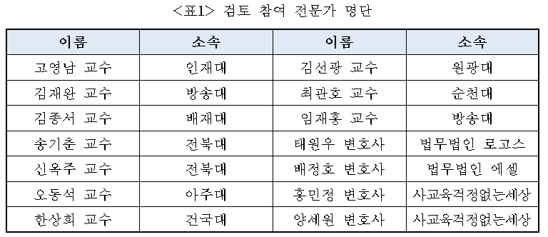 이에 사교육걱정은 사교육걱정 소속 법률위원회와 민주주의법학연구회와 공동으로 대학구조개혁법을 검토하였습니다. 참가한 법 전문가는 사교육걱정 법률위원회 소속 변호사 4명과 민주주의법학연구회 소속 법학 교수 10명으로 총 14명이며 명단은 아래와 같습니다.