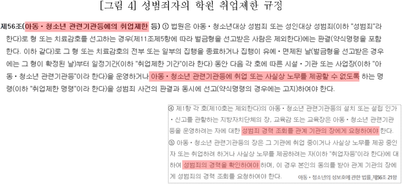 시설 규정뿐 아니라 스터디카페는 학원을 비롯한 아동·청소년 관련기관 종사자는 성범죄 경력을 확인받아야 하는 취업제한 규정에도 적용되지 않습니다. 스터디카페는 청소년 누구나 제한 없이 이용하고 있는 교육 시설인데, 여타의 교육기관과는 달리 성범죄자의 취업제한 규정을 적용받지 않고 있다는 모순도 스터디카페가 학원법의 대상이 되어야 할 중대한 이유입니다.