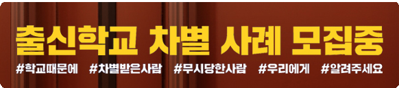 출신학교로 차별 당할 것인가! 고발할 것인가!
