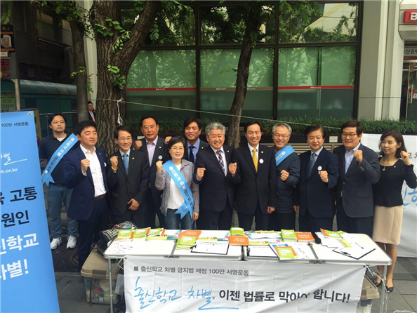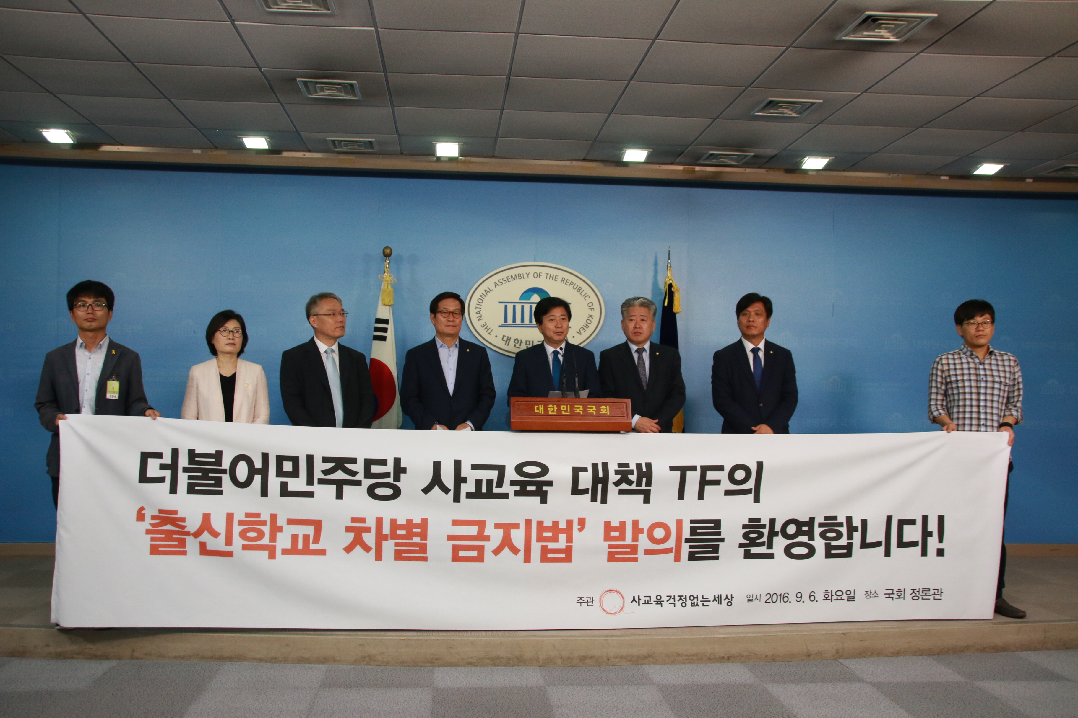 2016년 더불어민주당은 20대 총선 직후 서민경제에 부담을 주는 사교육비를 절감하고 공교육 정상화를 실현하기 위해 사교육대책TF를 구성하였고 우리 단체가 제안한 ‘출신학교 차별금지법’을 받아들여, 더불어민주당 오영훈 의원 등 18인의 의원이 「학력·출신학교 차별금지 및 권리구제 등에 관한 법률안」공동발의에 참여하였습니다. 당시 사교육대책 TF는 "공교육 정상화와 사교육 문제의 근본적 해결을 위해 시민들과 함께 출신학교차별금지법 제정에 앞장서겠다"며 출신학교 차별금지와 학벌주의 타파 등을 TF의 중점과제로 제시했습니다.