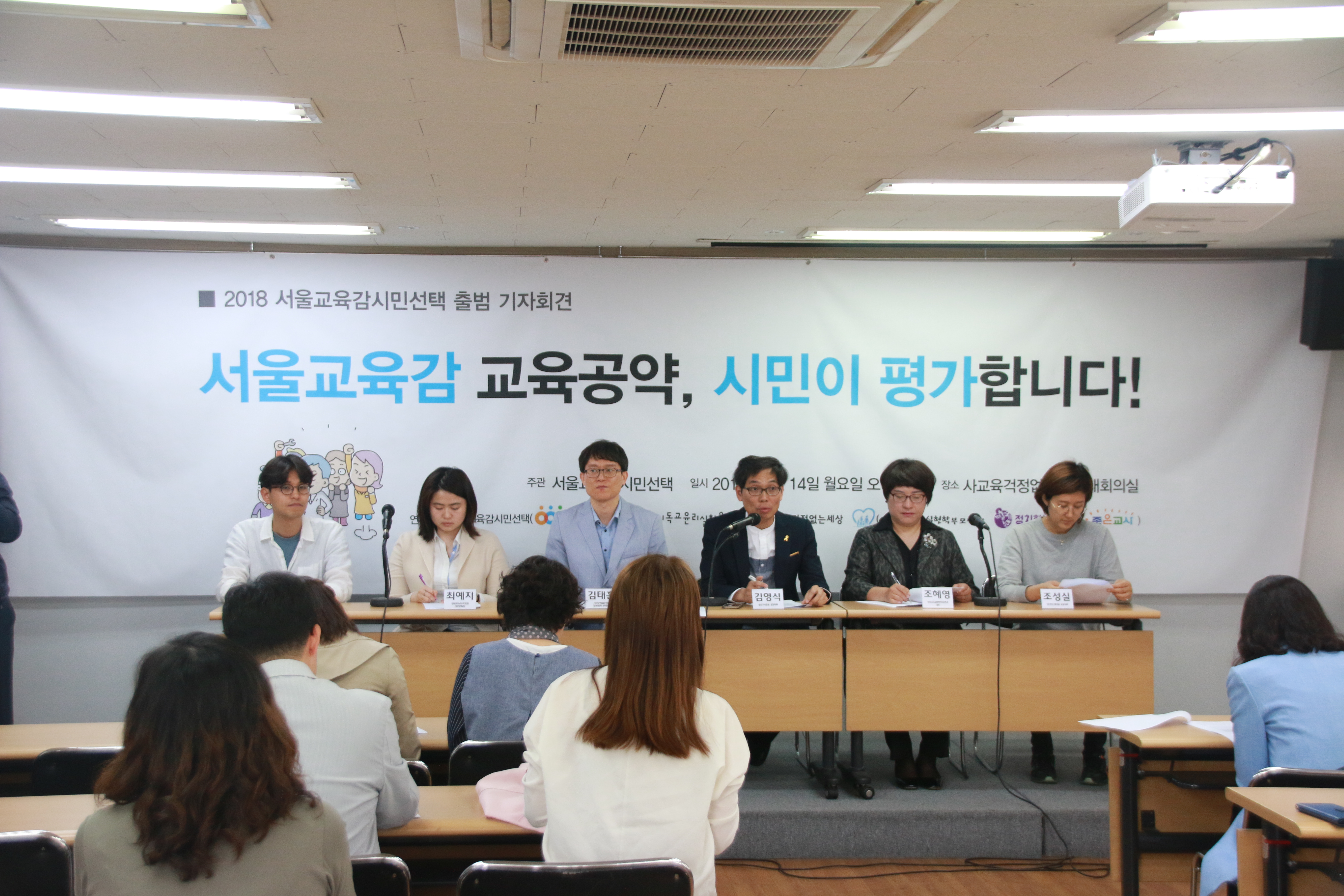 ■ 2018 서울교육감 시민선택 출범 기자회견 보도자료(2018. 5. 14.) 2018 서울교육감 공약 평가운동을 시민들과 함께 시작합니다! ▲ 『2018 서울교육감 시민선택』은 5월 14일 11시, 사교육걱정없는세상 대회의실에서 서울교육감 후보 공약을 평가하는 운동 시작을 알리는 출범 기자회견을 개최함. ▲ 시민선택 참여단체: 경제정의실천시민연합, 기독교윤리실천운동, 사교육걱정없는세상, 인간교육실현학부모연대, 정치하는엄마들, 좋은교사운동 이상 6개 단체. ▲ 주요 일정 : △5월 14일 출범 기자회견 △5월 16일 예비 후보 대상 질의서 발송, △ 5월 23일 후보 캠프 최종 답변서 접수 완료, △5월 31일 교육감 후보 개별 초청을 통한 공약 평가 토론회 개최, △6월 7일 최종 평가결과 발표 기자회견 등. ▲ 공약평가를 위한 세부 사항 ▲ 서울교육감 시민선택은 좋은 공약을 실천할 의지가 있는 후보를 서울 유권자들이 선택할 수 있도록 온힘을 다해 노력할 것임.