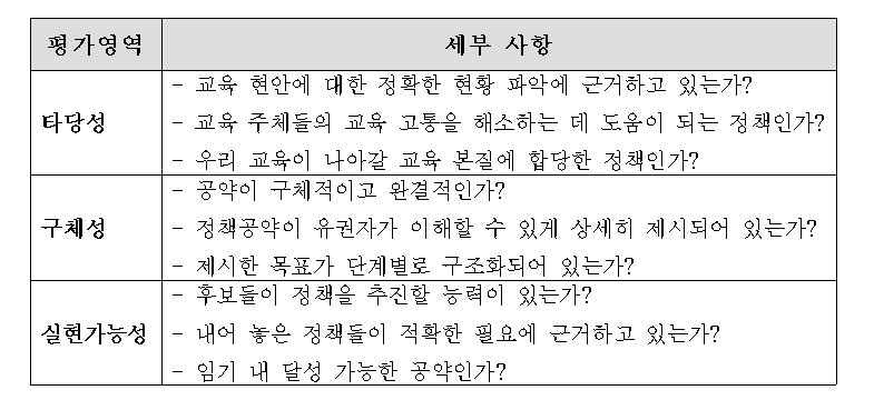 ▲ 공약평가를 위한 세부 사항