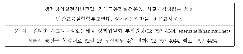 ▲ 시민선택 참여단체: 경제정의실천시민연합, 기독교윤리실천운동, 사교육걱정없는세상, 인간교육실현학부모연대, 정치하는엄마들, 좋은교사운동 이상 6개 단체.