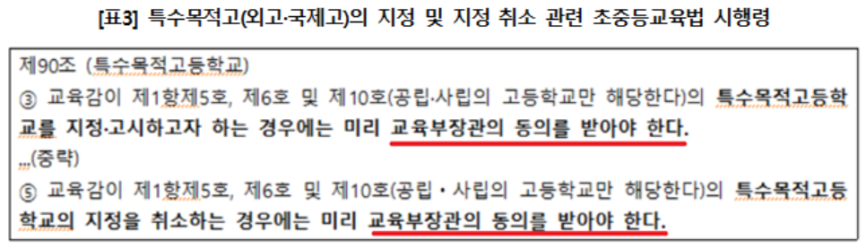 ▲ 지금은 교육부가 자사고·외고·국제고의 지정 및 취소의 권한 위임을 다룰 때가 아니고, 특권학교 존립의 이유를 따져 근거 시행령 폐지를 통해 이들 학교의 일반고 전환을 해야 함.