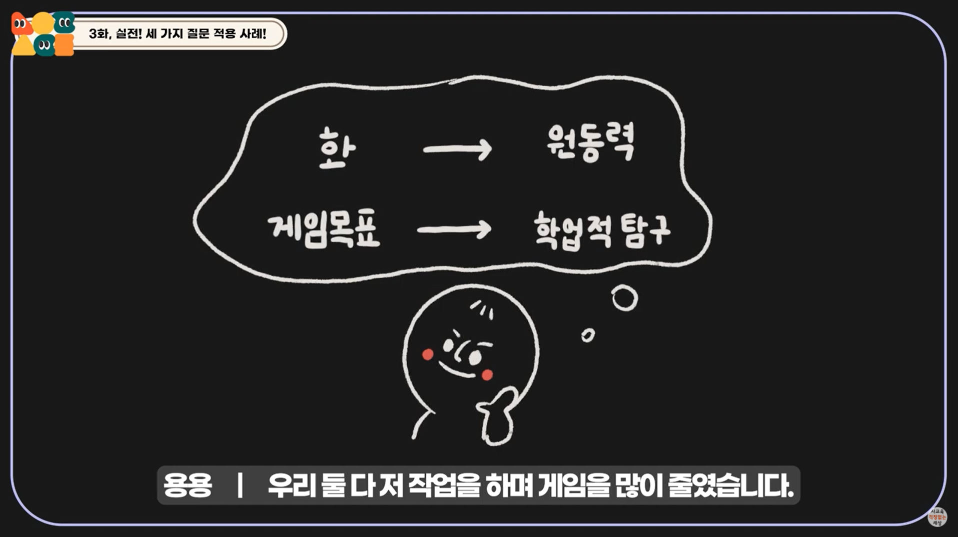 한 때 게임 중독에 빠졌던 20대 상근자 “용용이”님의 경험을 통해 부모님들이 궁금해 하는 “게임에 빠진 아이들과 어떤 이야기를 나눠야 할까요?”, “말이 통하지 않을 때는 어떻게 하죠?”에 대해 답변을 드립니다. 게임 중독을 멈출 수 있게 하는 결정적 세가지 질문의 의미와 가정에서 실천해볼 수 있는 실전 팁까지 차근차근 알려드립니다. 자녀와 이 영상을 함께 보면서 게임에 대한 이야기를 나눠보셔도 좋습니다.^^ 이제 만나러 가볼까요?
