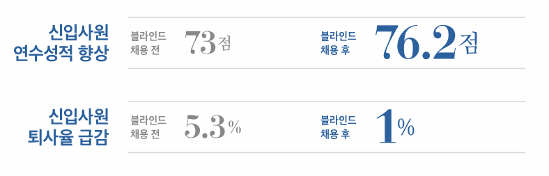 블라인드 채용 결과, 특정 공공기관 비수도권 인재 약 80% 선발되는 등, 공정성, 기업 경제적 효과 증대!